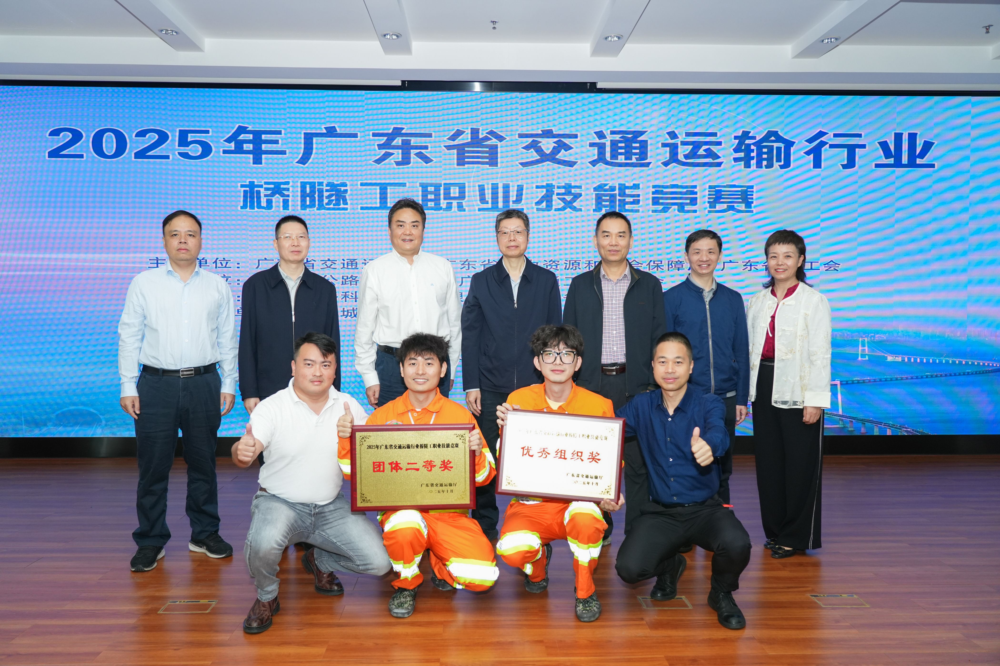 2025年10月22日至 24 日,2025 年广东省交通运输行业桥隧工职业技能竞赛激烈开赛,全省 26 支精英队伍同场竞技。公司参赛团队凭借过硬实力,在一众强劲对手中脱颖而出,公司参赛员工何阳在理论考试中荣登榜首,同时公司参赛团队斩获团体二等奖,并荣获优秀组织奖。