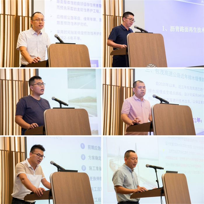会上,马尉倘、黄国威、王殿宇等12位公司技术骨干或项目管理人员向参会人员分享了养护施工技术、项目管理经验、养护工程创新案例等,演讲过程中视频与动画相结合,方式新颖,气氛热烈,演讲内容涵盖路面、桥梁、隧道、交安设施、养护机械等多个方面,涉及范围广、内容丰富,进一步提升了参会人员的学识,促进了公司各项目单位之间的互学互鉴,取长补短,达到了各单位人员相互交流、相互提升的目的。