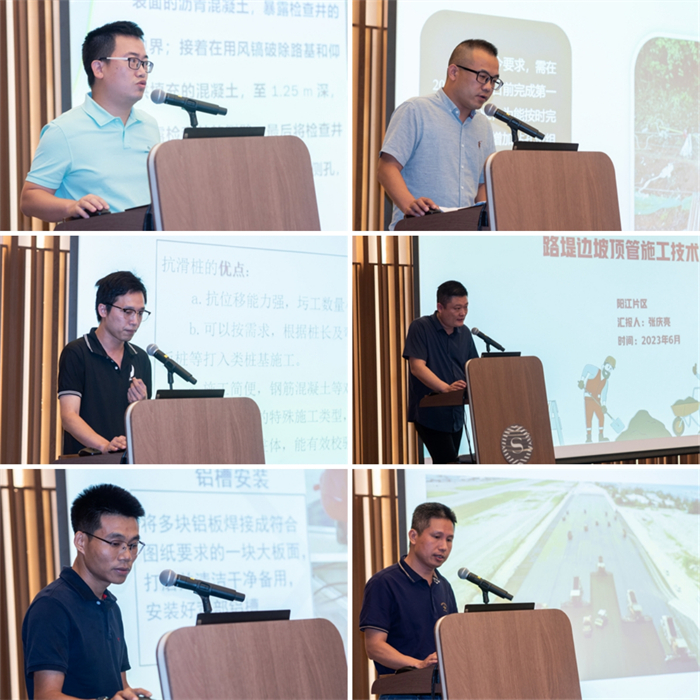 会上,马尉倘、黄国威、王殿宇等12位公司技术骨干或项目管理人员向参会人员分享了养护施工技术、项目管理经验、养护工程创新案例等,演讲过程中视频与动画相结合,方式新颖,气氛热烈,演讲内容涵盖路面、桥梁、隧道、交安设施、养护机械等多个方面,涉及范围广、内容丰富,进一步提升了参会人员的学识,促进了公司各项目单位之间的互学互鉴,取长补短,达到了各单位人员相互交流、相互提升的目的。